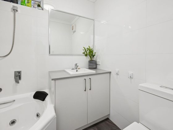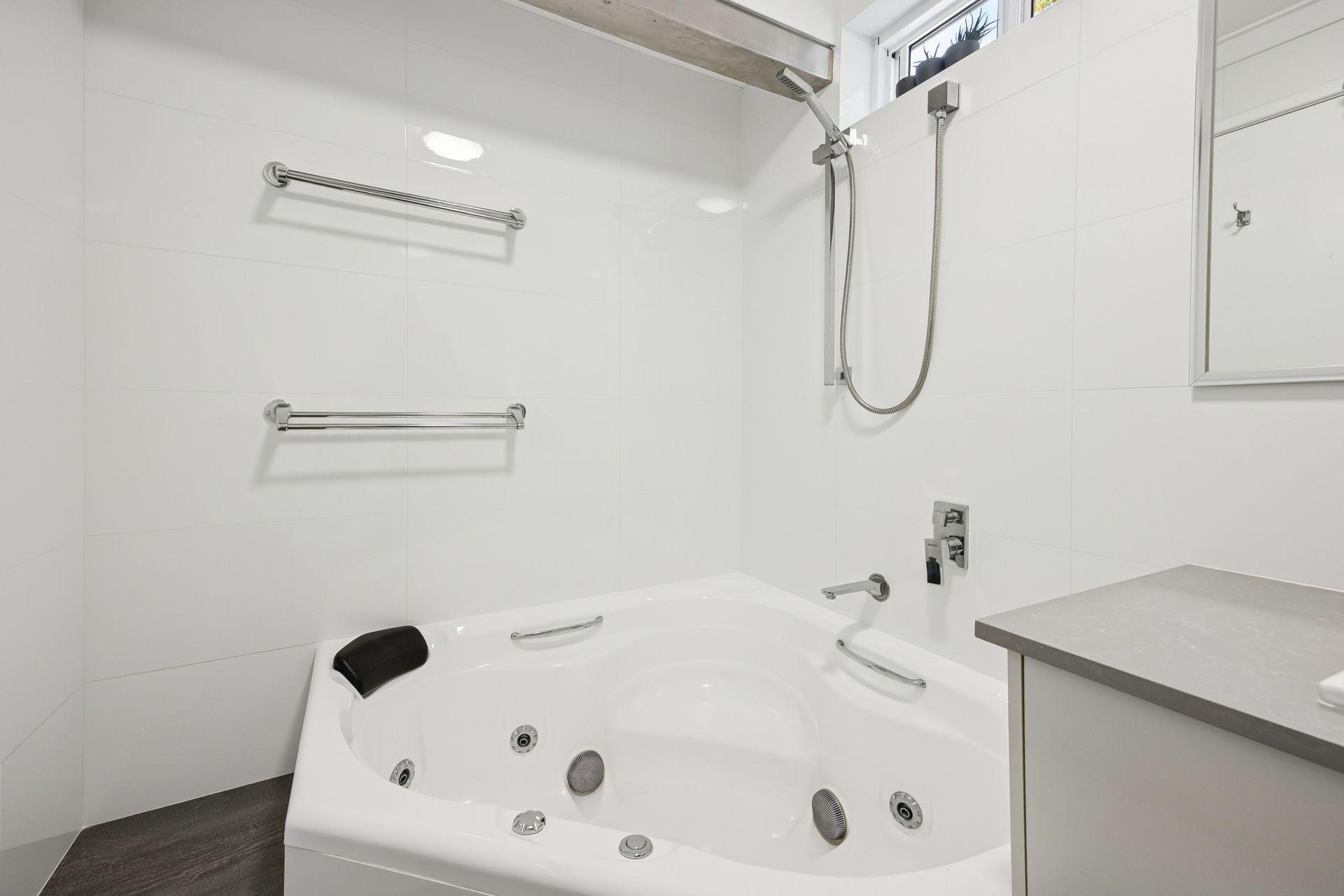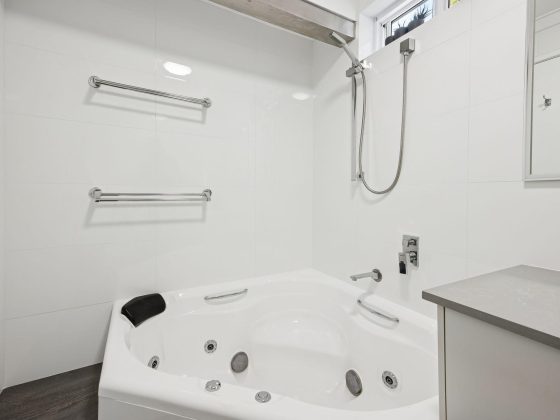 Bathroom 2 (downstairs): Shower, Spa Bath, Basin, Toilet
