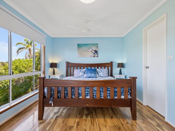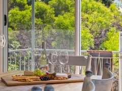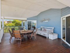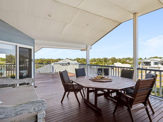 The home’s elevated position captures sweeping ocean views, best enjoyed from the spectacular wrap-around balcony that spans the upper level. This incredible outdoor living space is where you’ll spend most of your time — enjoying morning coffee as the sea breeze rolls in, long family lunches in the sun, and relaxed evening drinks while watching the lights of Falcon twinkle below.