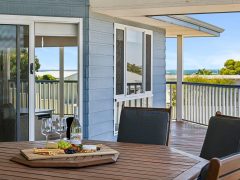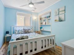 With four generously sized bedrooms sleeping up to 10 guests, Falcon Bayview offers exceptional flexibility for families and groups. The master suite upstairs features a king bed and private ensuite, while additional bedrooms include a bunk room perfect for kids, plus king and queen bedrooms downstairs for privacy and comfort. The downstairs bathroom also features a luxurious spa bath, perfect for soaking and relaxing after a long day of swimming, golfing, or exploring the coast.