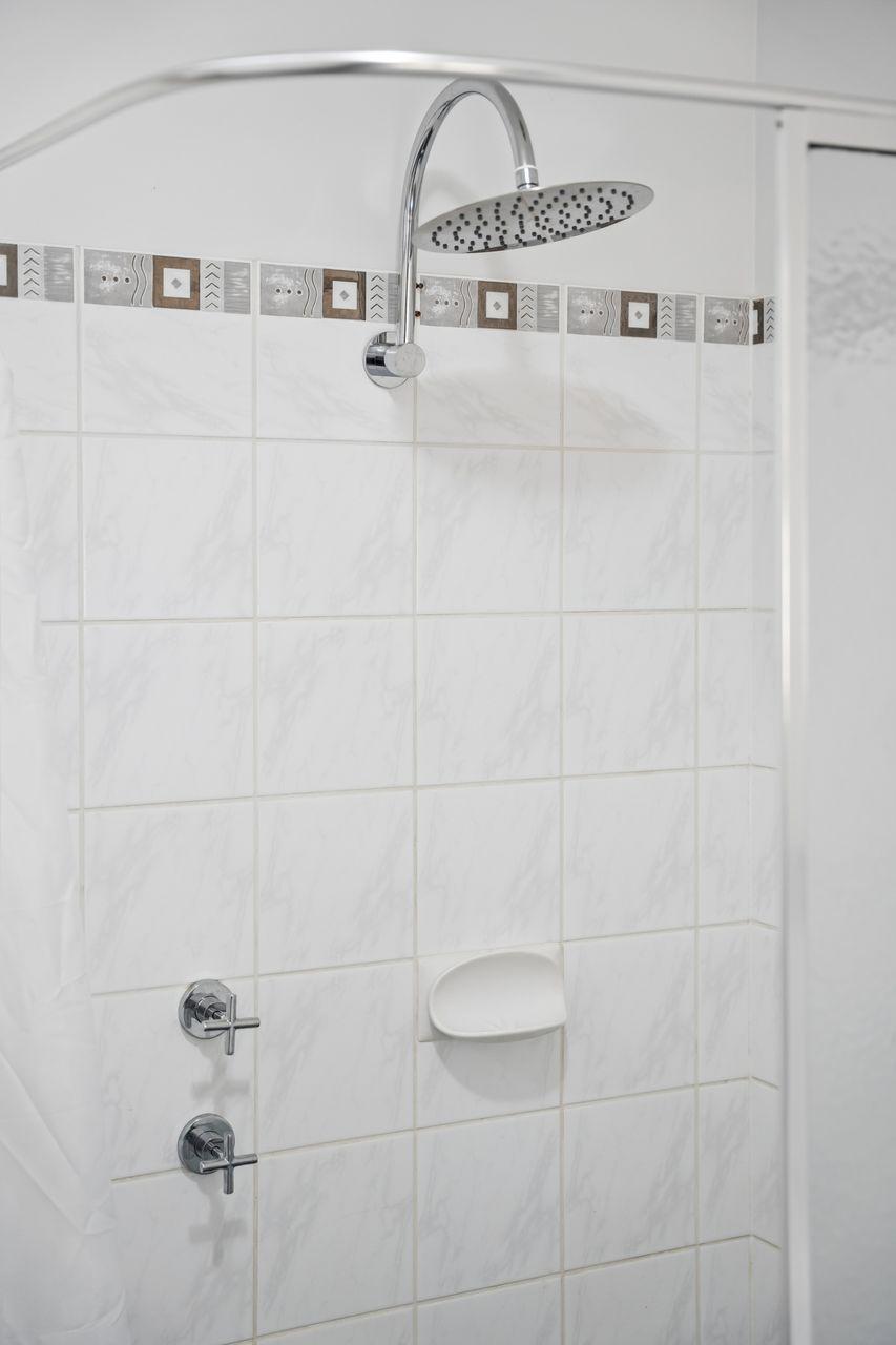 Bathroom 1 (ensuite to Bedroom 1) - shower, basin and toilet