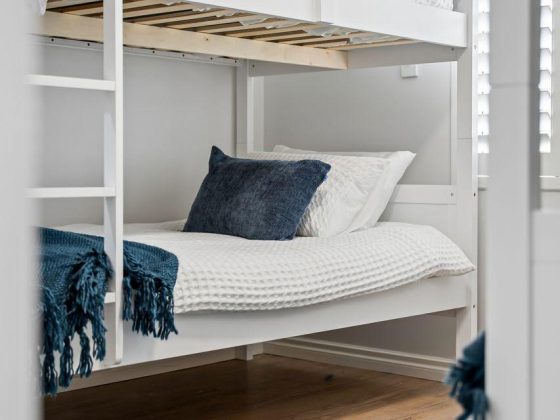 This beautifully refreshed home sleeps up to 10 guests across four uniquely styled “pod” bedrooms, each with its own colour palette and personality — creating a fun yet calming experience for families and groups.