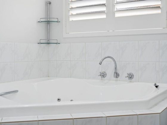 Bathroom 2 - shower, basin and spa bath and toilet