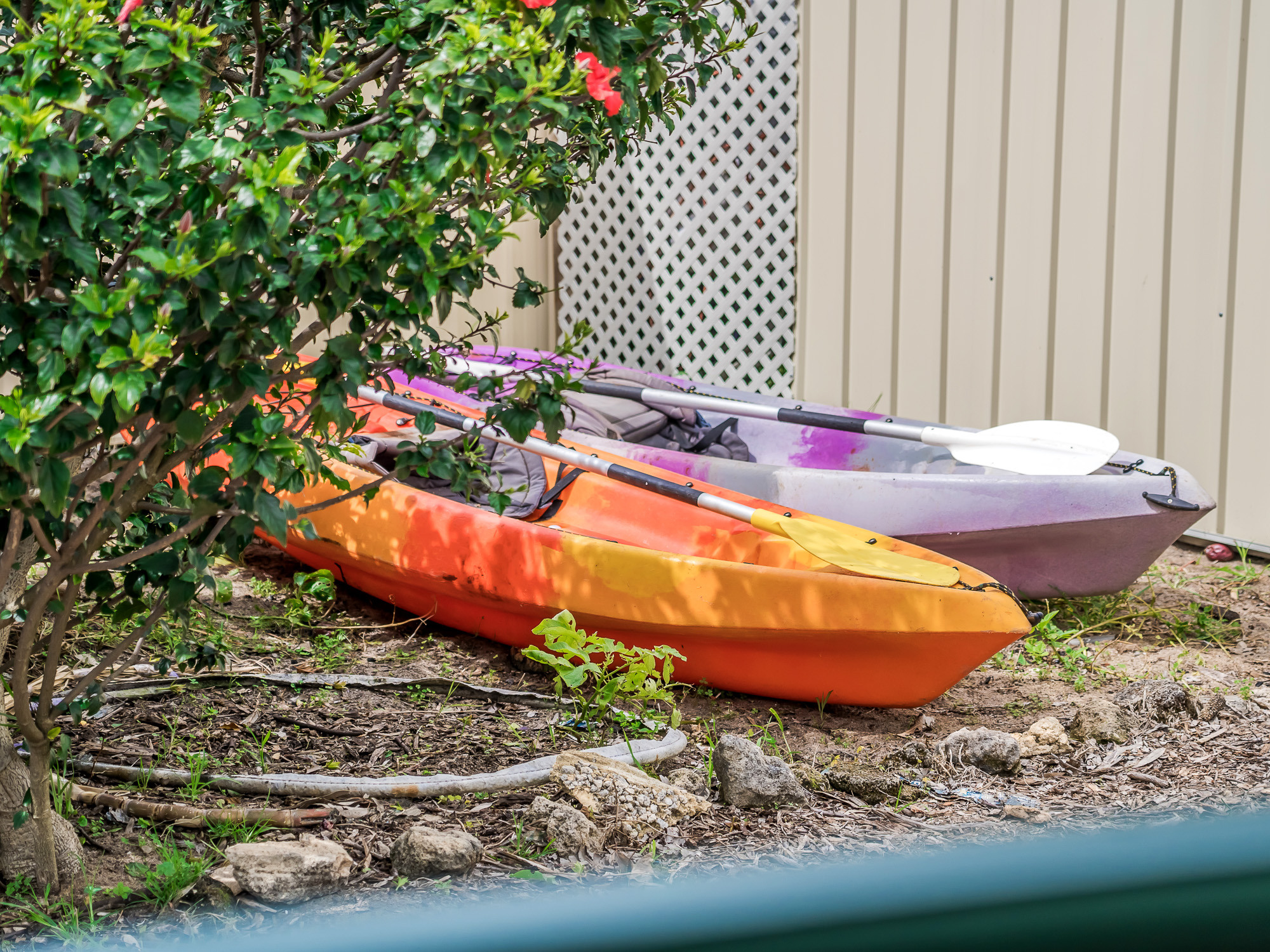 Family-friendly features including cubby house, kayaks, and open space