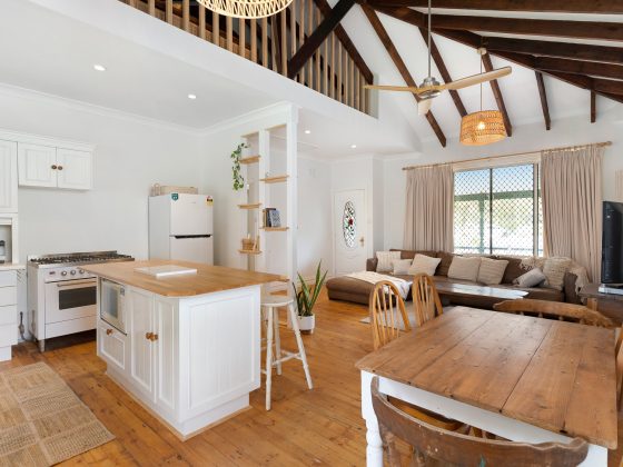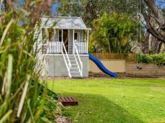 The expansive grassed area is the heart of the property. Children can run freely, play cricket, explore the cubby house, or simply lie under the sun while you relax nearby. This calm stretch of river feels like your own private sanctuary. Bring your boat and anchor it directly out front on the sea wall, launch one of the provided kayaks from the slipway, or enjoy fishing and crabbing just steps from the lawn. Many guests love starting their mornings with a peaceful paddle upriver to nearby Pelican’s Café for coffee, one of the area’s hidden gems.