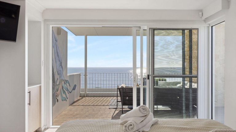 Fresh from a high-end renovation led by Studio Atelier, this two-storey retreat offers open-plan luxury and thoughtful details throughout. On the ground level, three beautifully styled bedrooms, a chef’s kitchen, and relaxed living and dining areas flow seamlessly to the alfresco terrace—complete with a BBQ, smoker, outdoor shower, fireplace, and manicured lawns. From the living areas and outdoor spaces, you’ll enjoy uninterrupted views over the sand dunes and out to the ocean and horizon. Upstairs is a master suite you’ll never forget, with panoramic ocean views, a luxurious ensuite (featuring a luxurious bath with full privacy), and a huge balcony with original mural artwork by renowned WA artist James Giddy.
